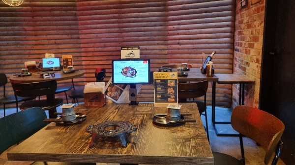 입구에 거대한 스모크 화덕이 있어서 시각적 임팩트가 강하고, 인테리어도 바베큐 식당답게 무드 조명이 가미된 우드톤 감성 등이 느껴진다는 후기 많아요.