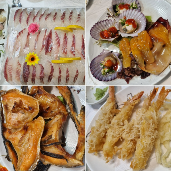 일반 횟집에서 기본 세팅정도로 끝나는 수준과는 차원이 다른, 한 상 가득 채워지는 구성으로, 각종 해산물, 튀김, 무침류, 따뜻한 요리까지 종류도 다양하고 맛이나 퀄리티도 괜찮습니다.