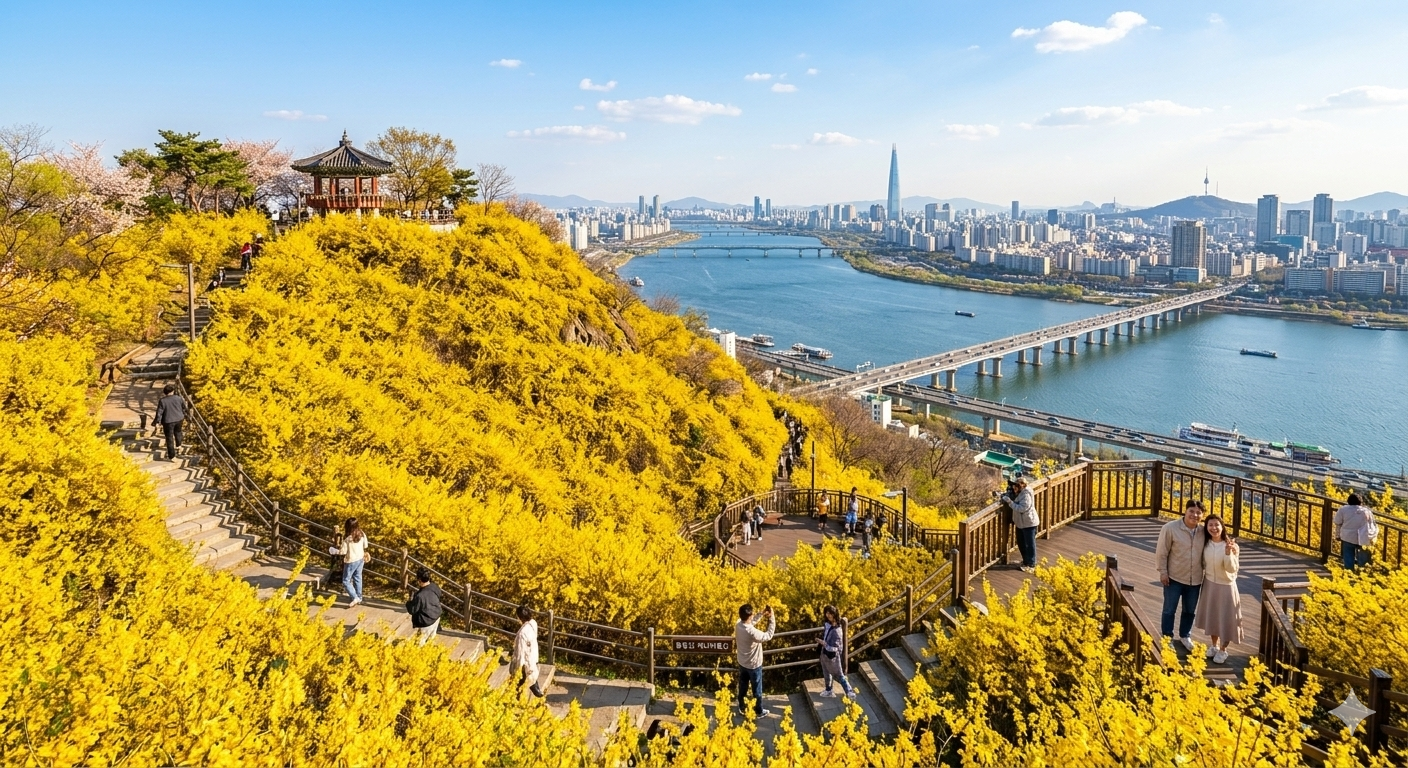 - 추천이유 : 멀리 가기 부담스럽다면 서울 도심 속 개나리 명소인 응봉산을 추천합니다. 3월말이면 산 전체가 노란색 물감으로 칠한 듯 노랗게 변합니다.